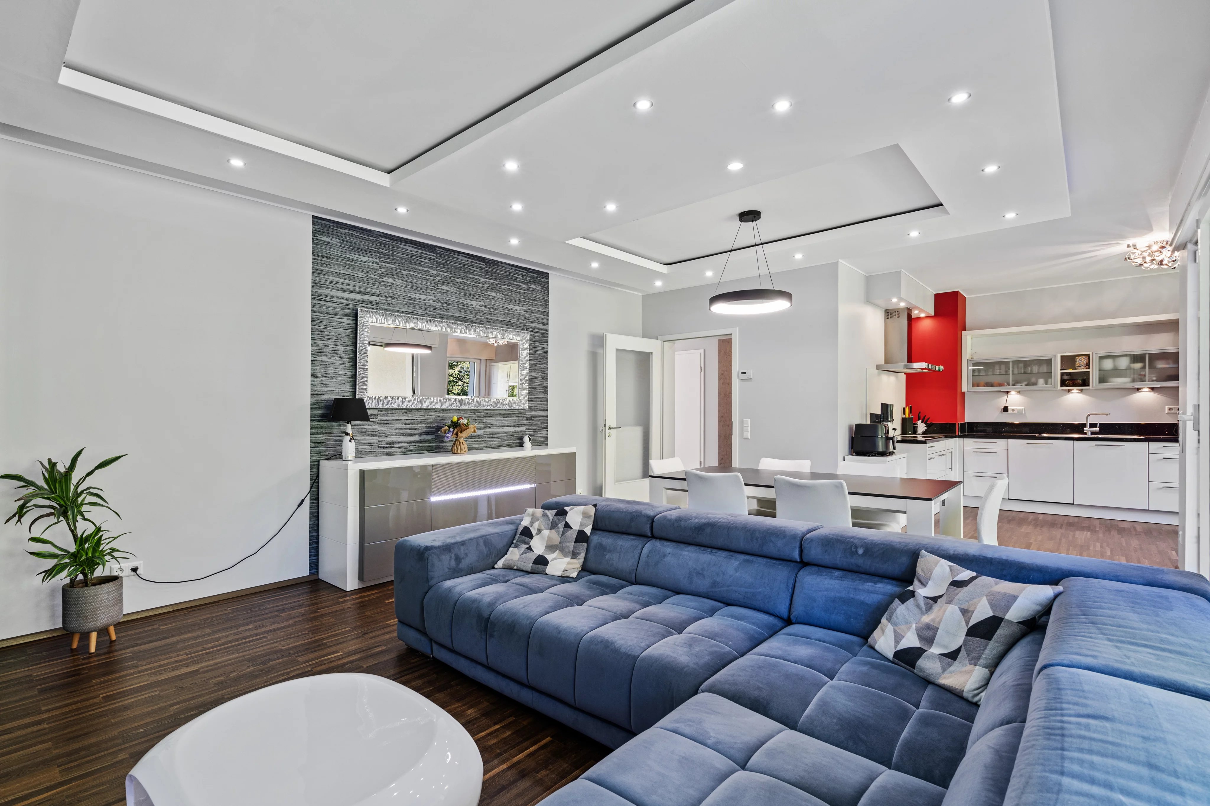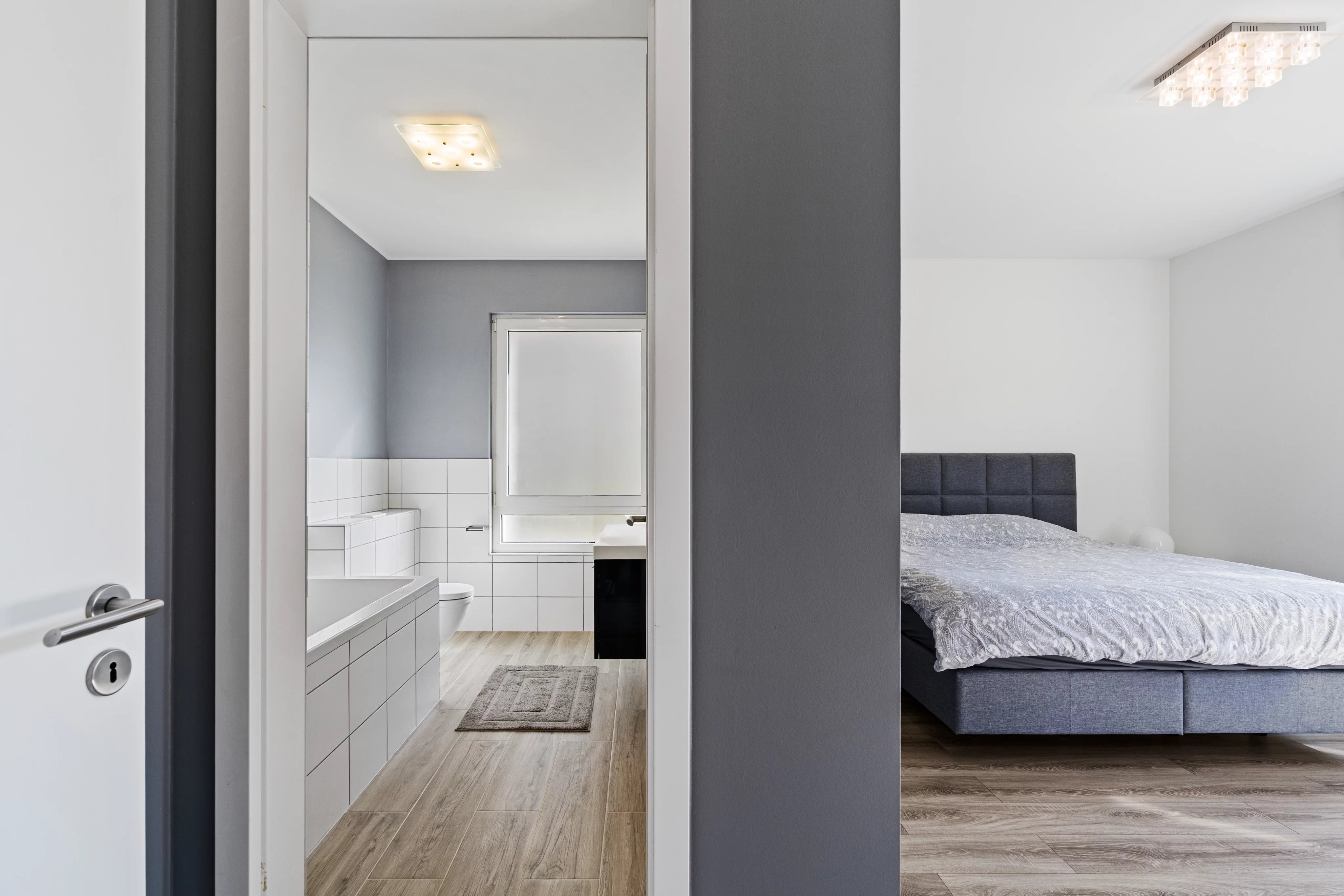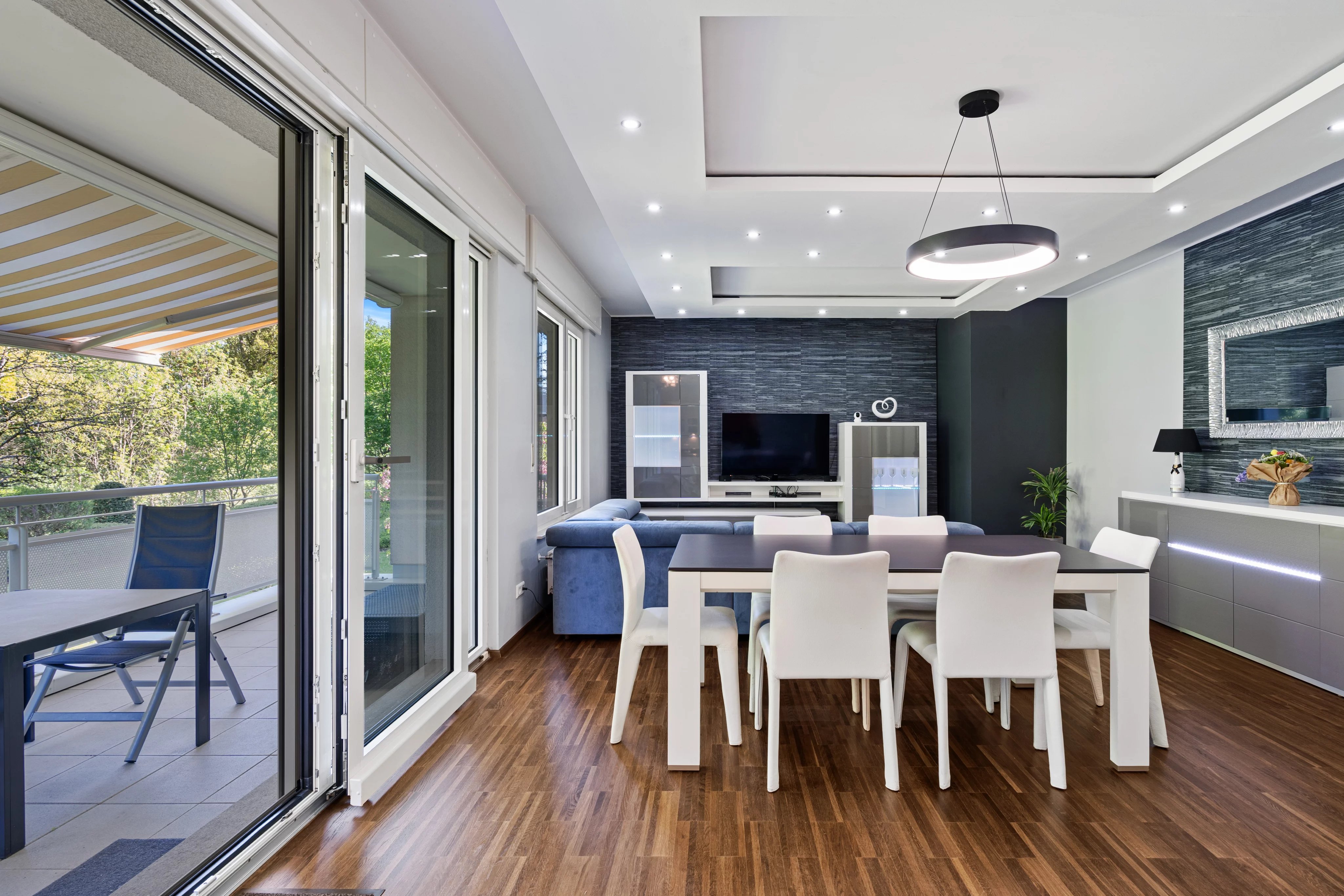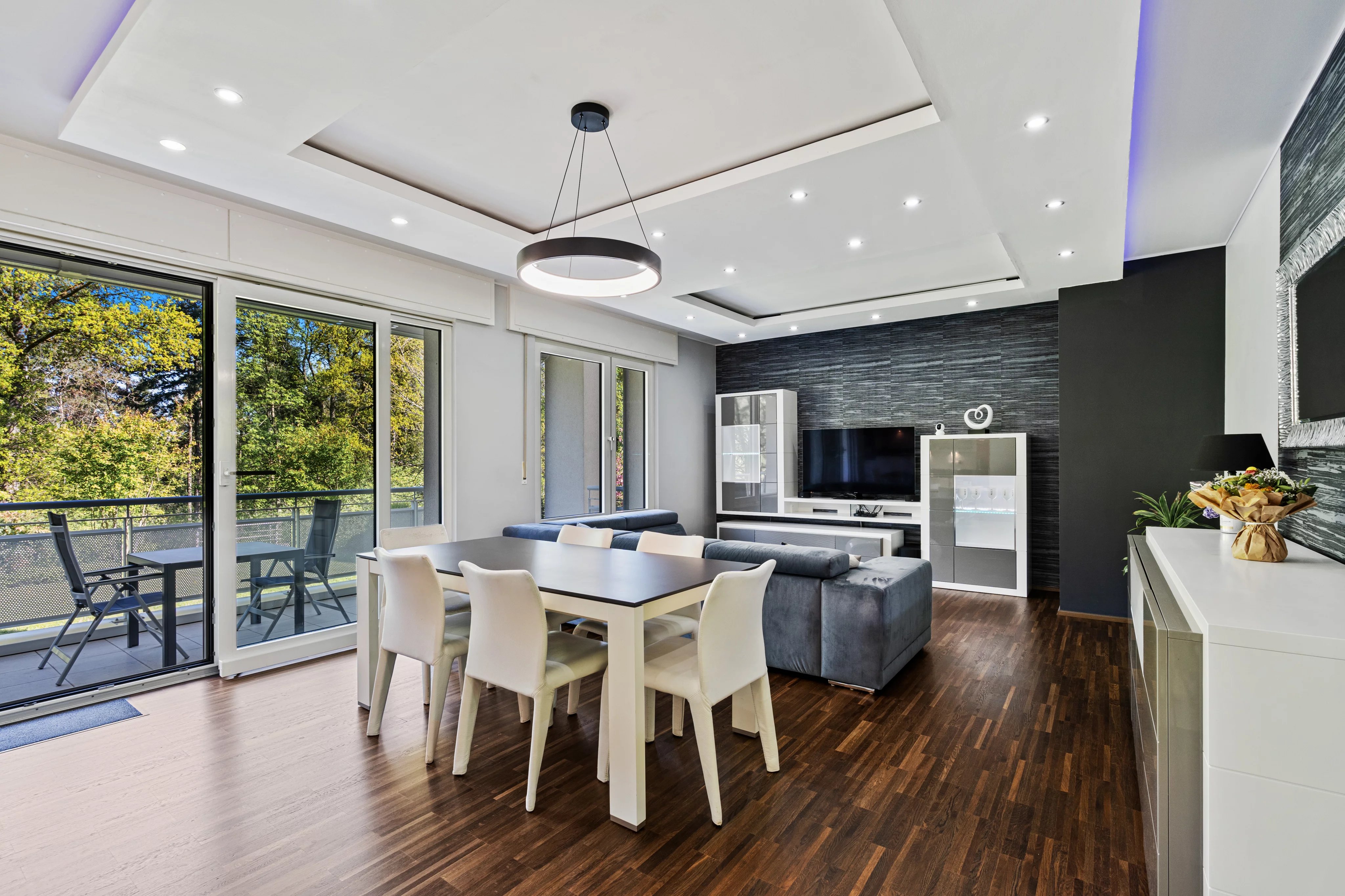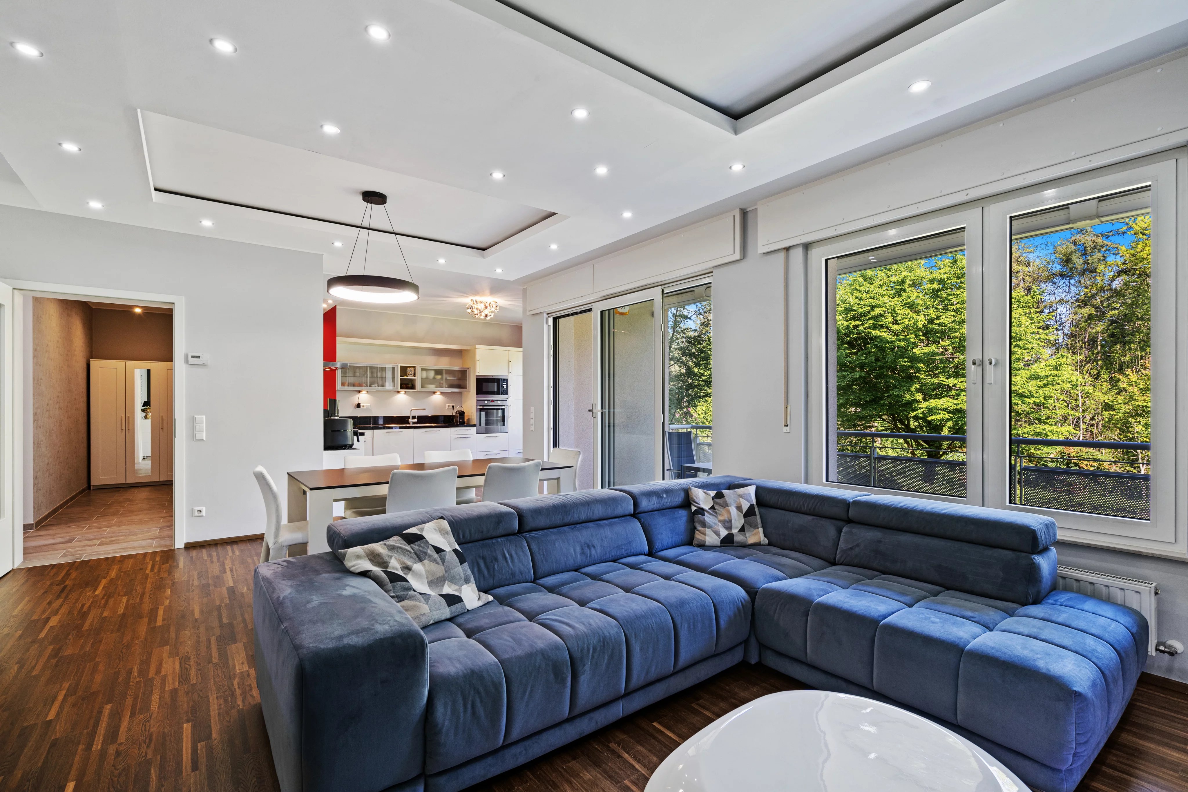 Le bien se compose de trois chambres confortables, dont une suite parentale avec sa propre salle de bain équipée d'une baignoire. L'espace de vie principal est chaleureux et lumineux, avec une cuisine ouverte sur le salon qui donne accès à un grand balcon de 12 m², parfait pour vos moments de détente.