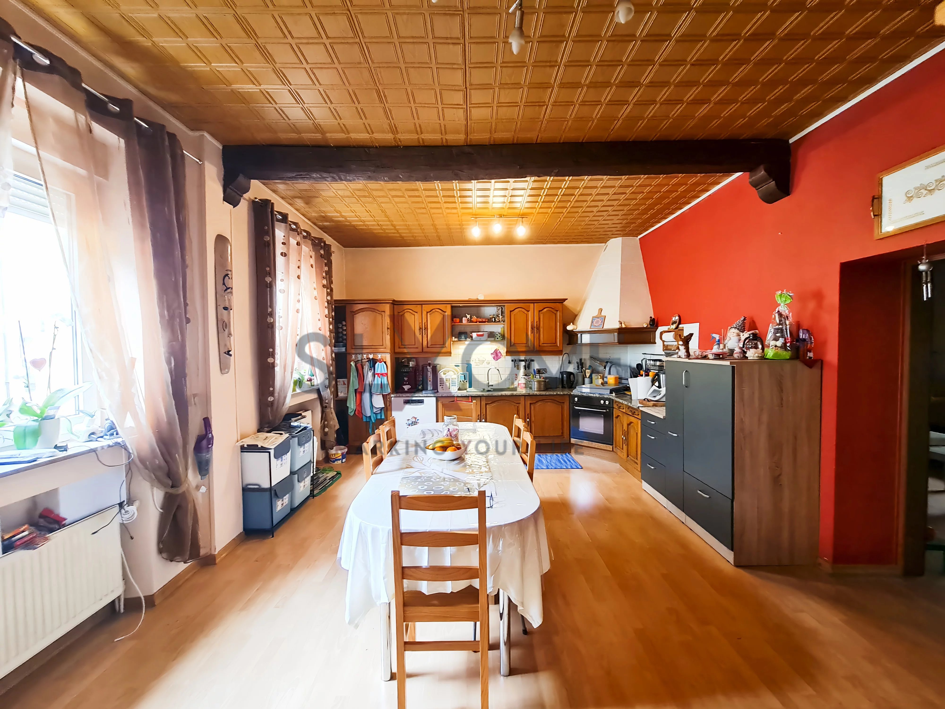 - Salle à manger/cuisine équipée de +/- 25m²